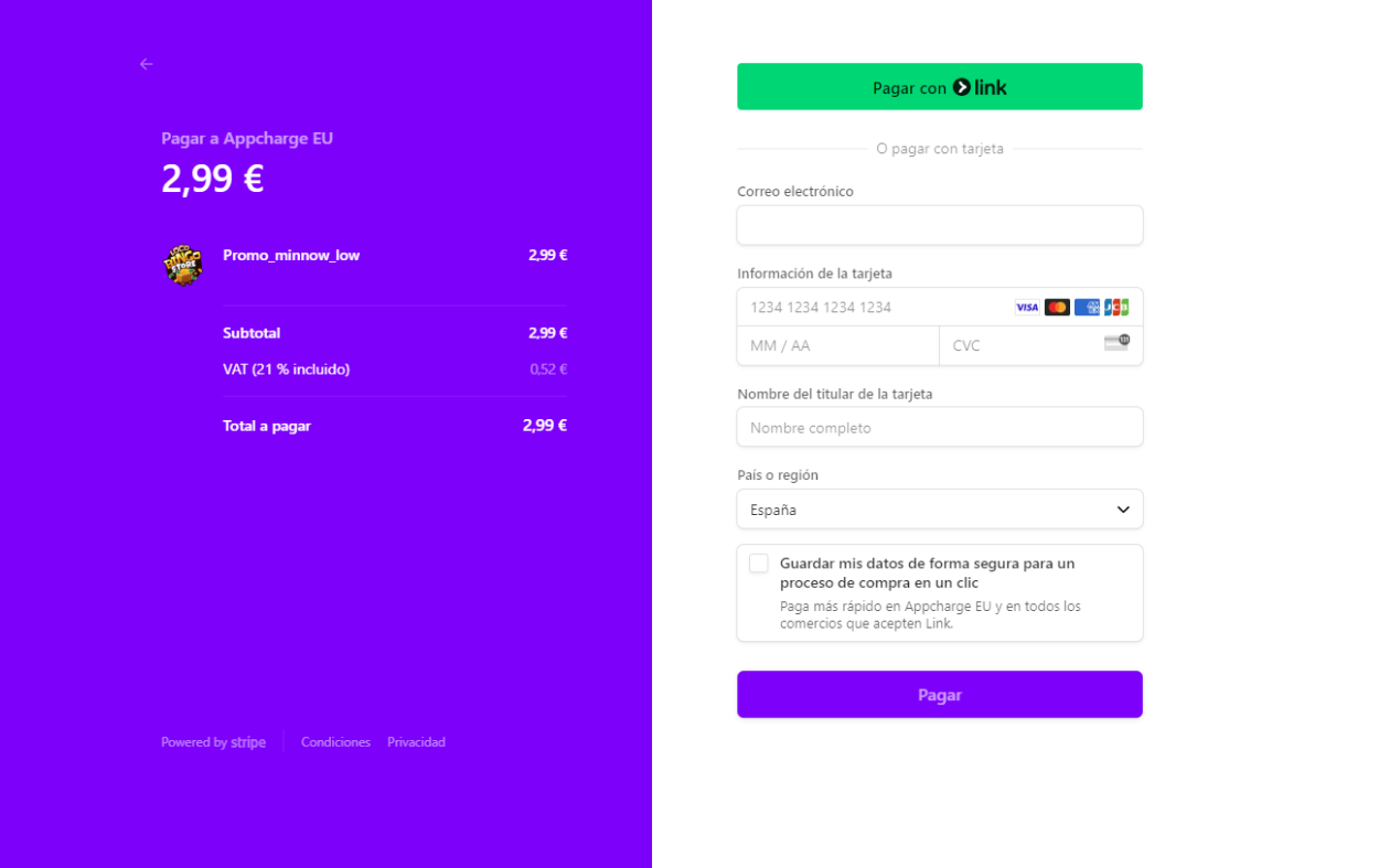 N'oubliez pas que comme vous le faisiez auparavant et si vous le souhaitez, vous pouvez enregistrer les informations de votre carte pour pouvoir effectuer des paiements rapidement à l'avenir en cliquant sur la case ci-dessous.
