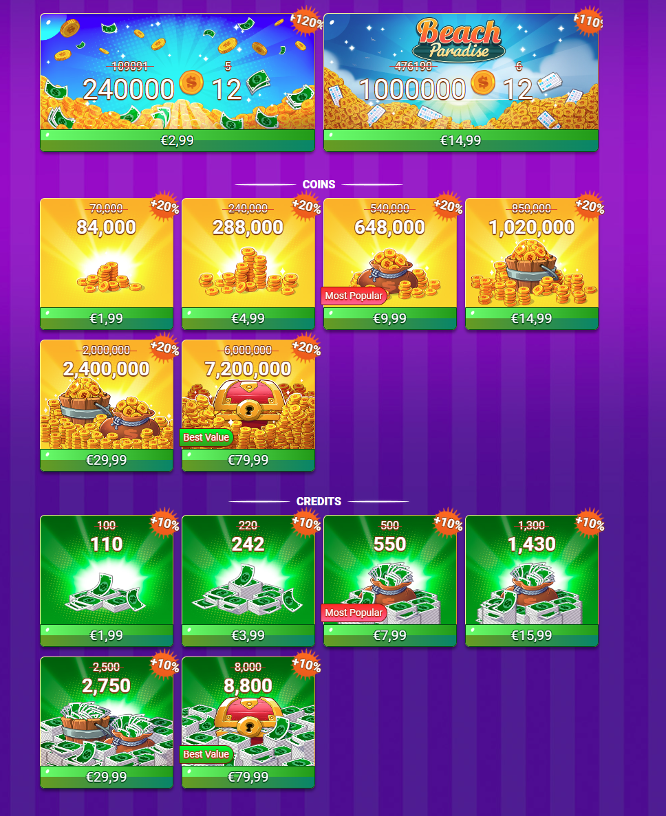 Comme vous pouvez le constater, plusieurs offres sont disponibles dans la boutique, tant pour les crédits que pour les pièces, il vous suffit de cliquer sur celle qui vous intéresse.