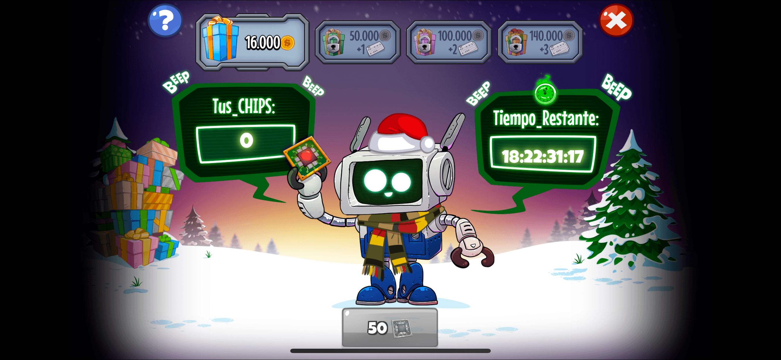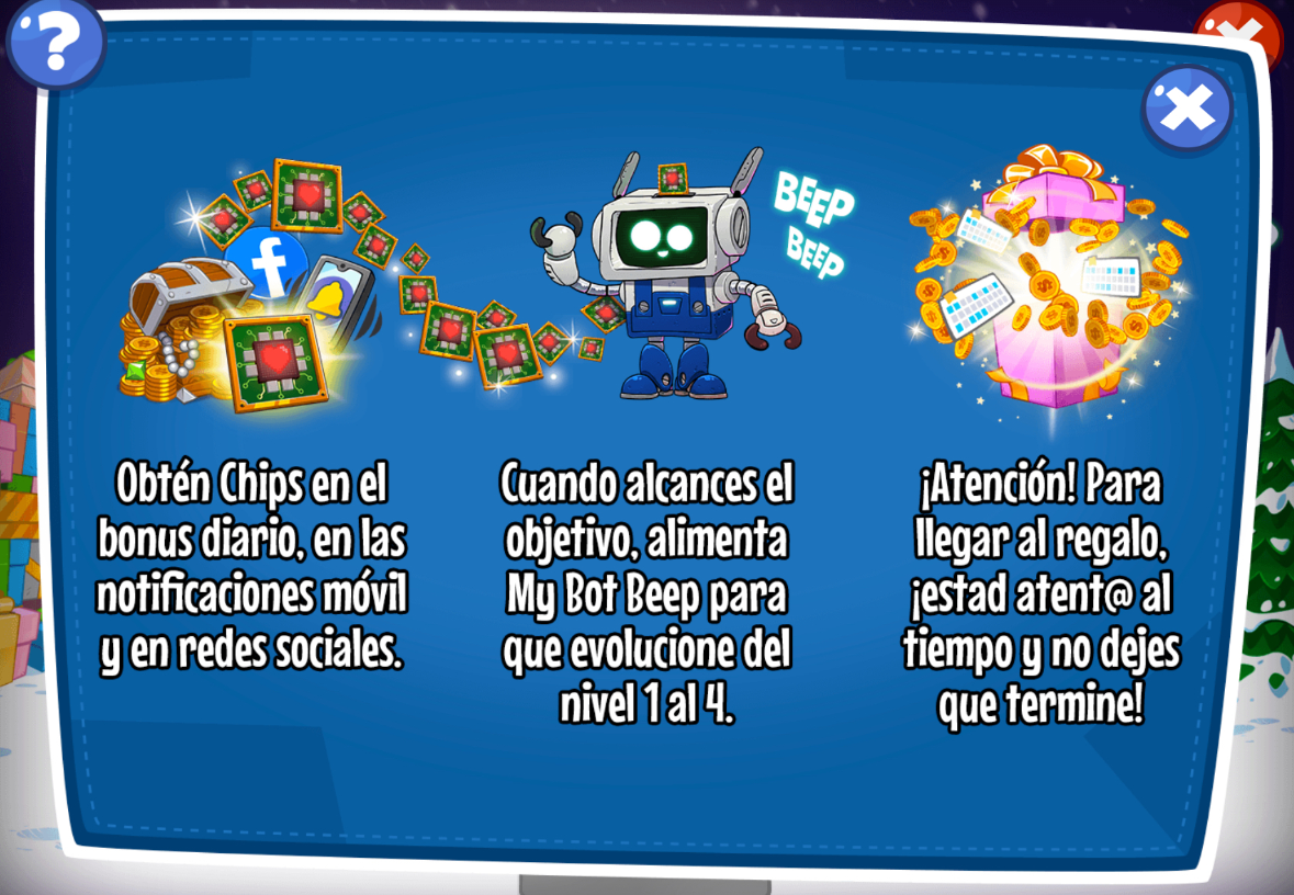 Depois de recolher o BÓNUS DIÁRIO (aparecerá outro presente com 15 fichas quando o recolher).